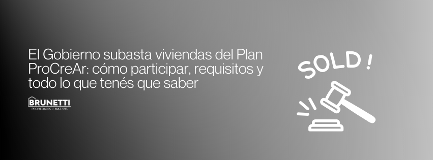 Publicado por Brunetti Propiedades | #PrimeroVos –El Gobierno nacional anunció la subasta de viviendas y terrenos que formaban parte del histórico programa ProCreAr, con el objetivo de poner en valor inmuebles que nunca fueron adjudicados o quedaron asociados a contratos de obra ya finalizados. Las subastas se realizarán de manera 100% online a través de SUBAST.AR, la plataforma oficial del Estado.A...